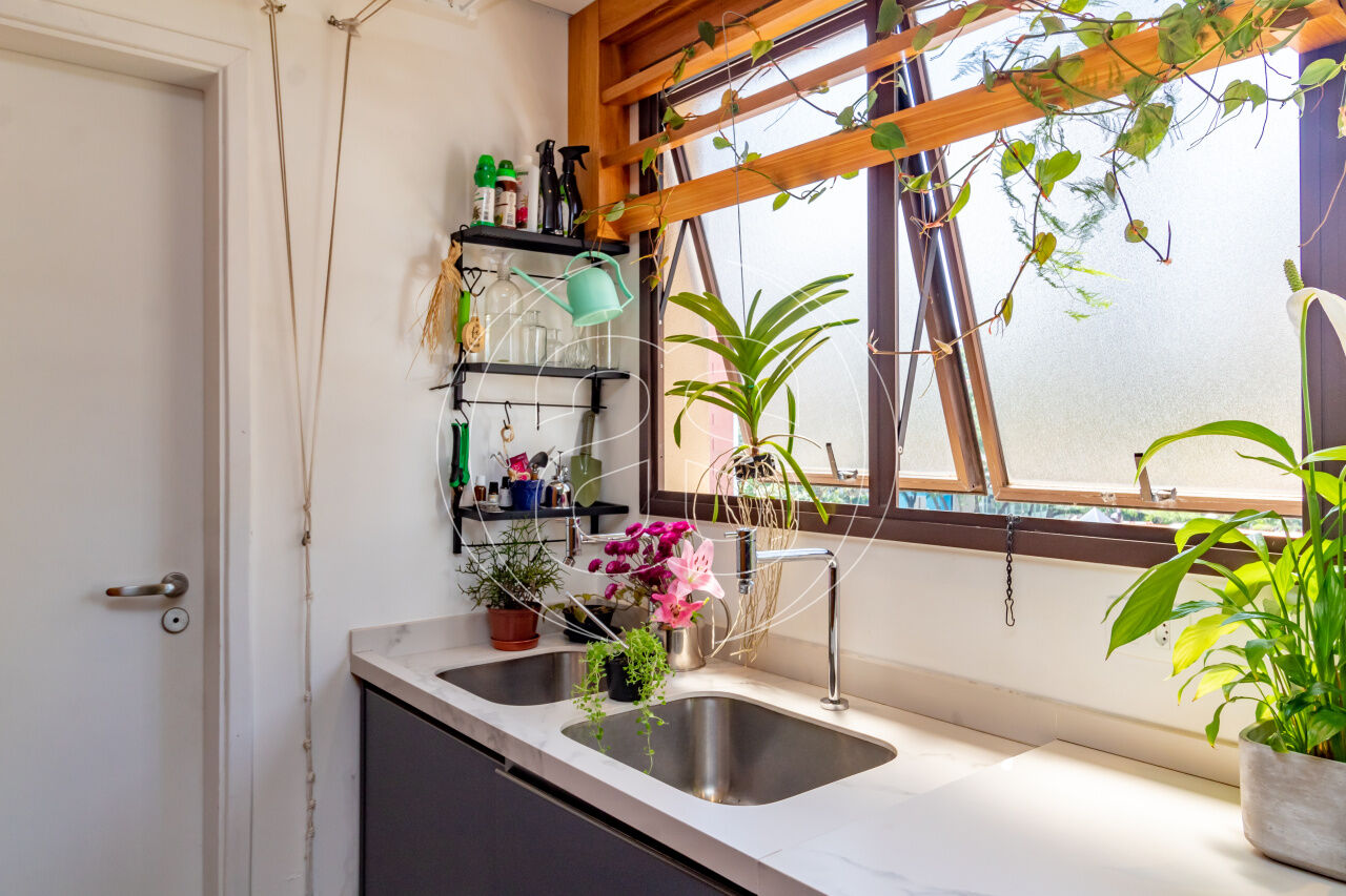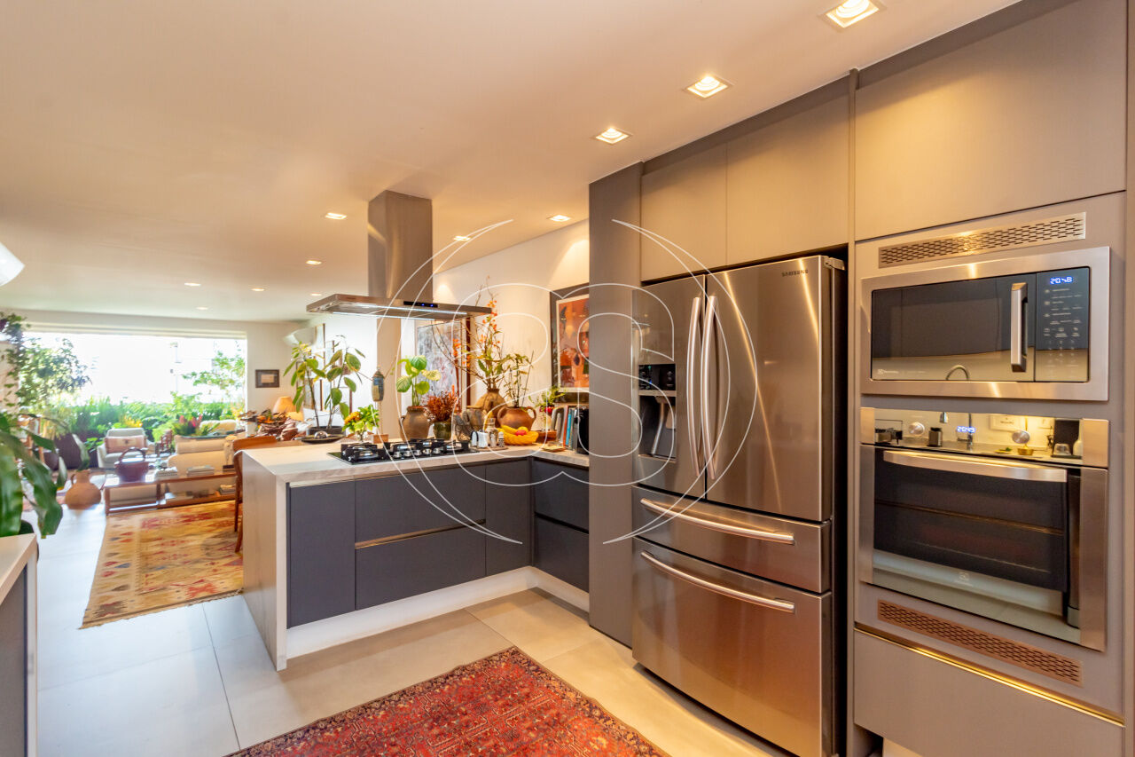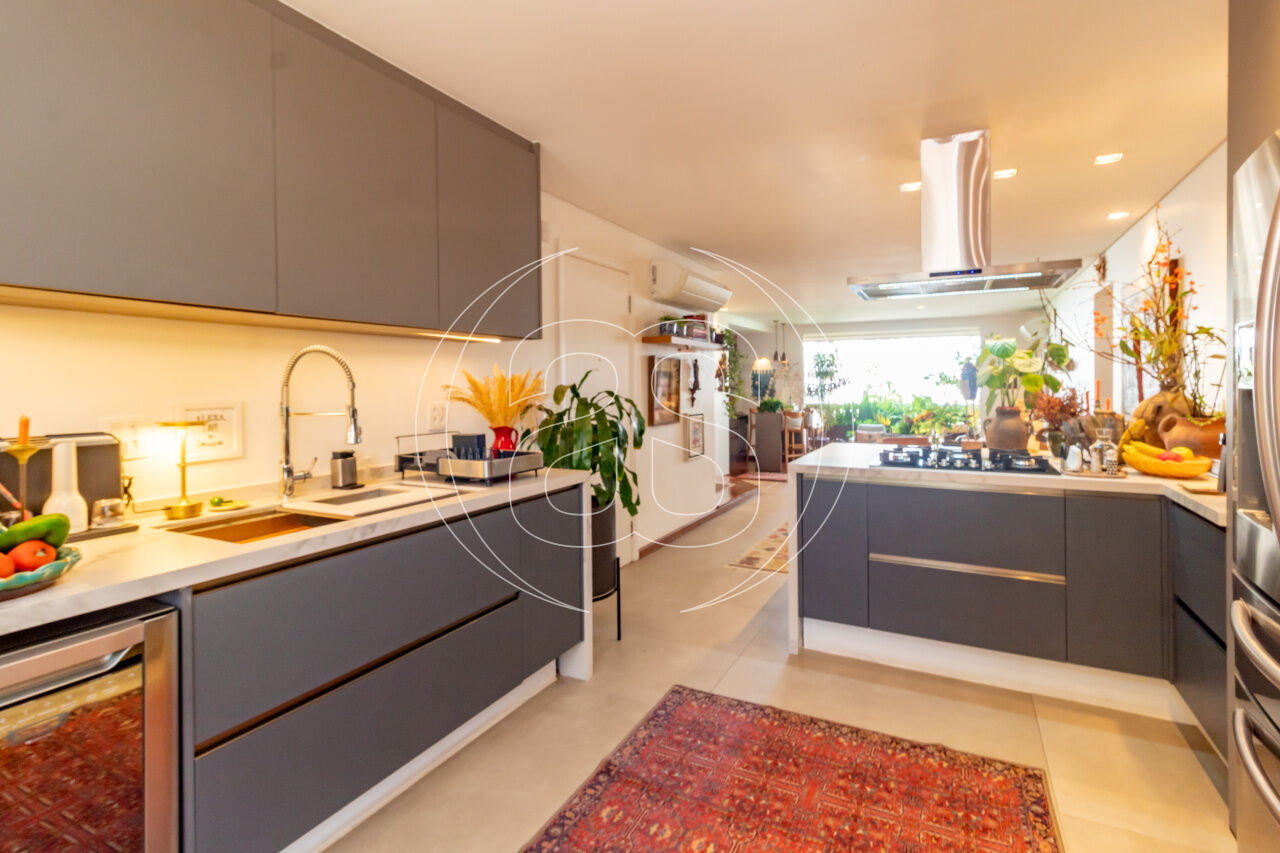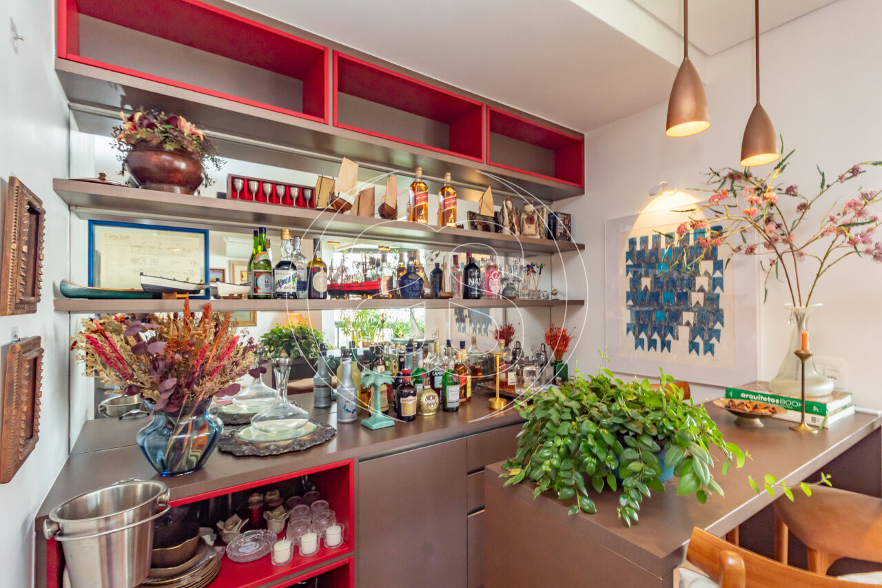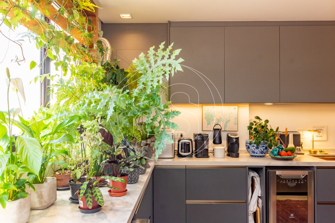 A cozinha planejada com armários Bom Tempo integra-se de forma harmoniosa à área social, criando um ambiente moderno e funcional, perfeito para receber amigos e familiares. As cortinas com automação trazem praticidade e um toque contemporâneo ao espaço.