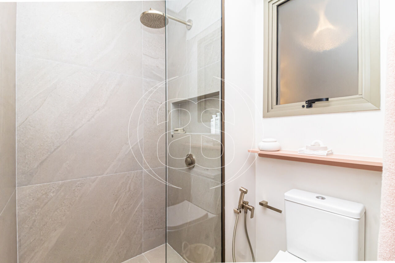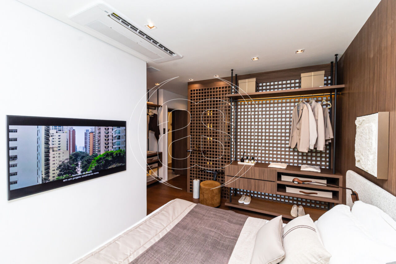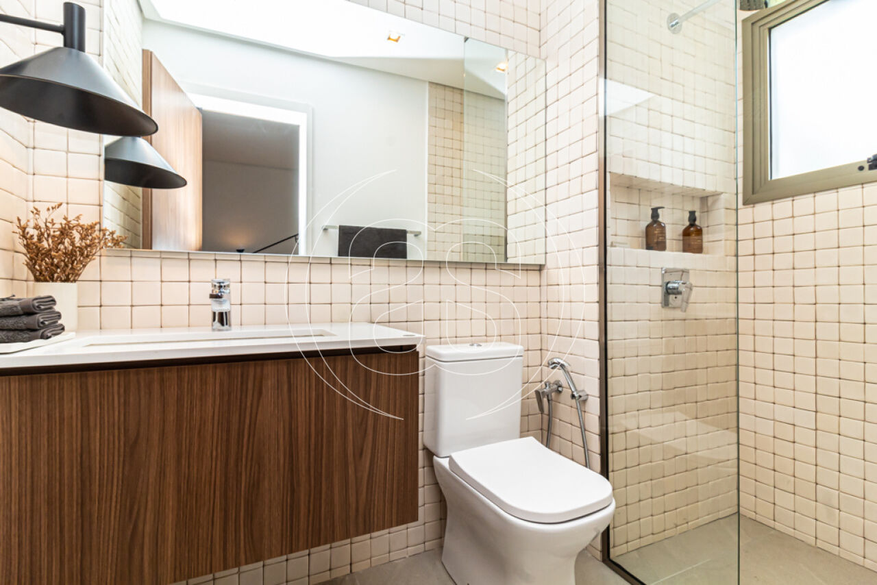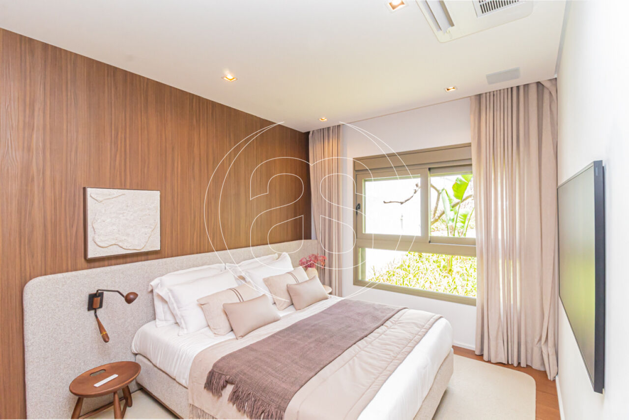 Piso de madeira engenheirada nos dormitórios e porcelanato nos banhos exceto lavabo, áreas de serviço e terraços descobertos