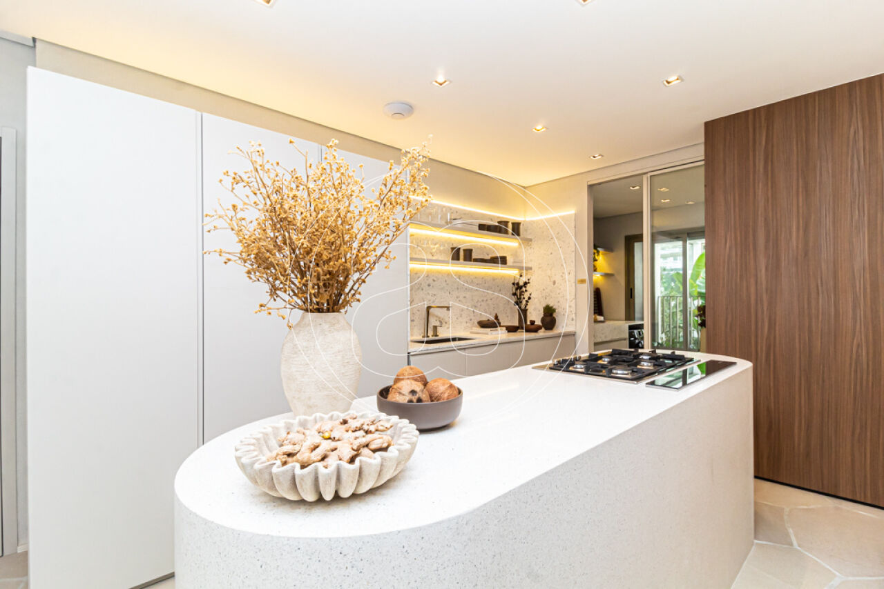 Unidades de 150 m² com opção de decorado final 1, cozinha aberta e ampliada e 2 vagas