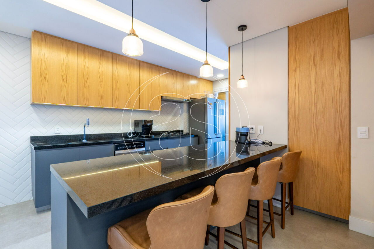 O interior do imóvel apresenta acabamentos de alta qualidade, incluindo piso em porcelanato e móveis planejados que otimizam os ambientes. A cozinha é integrada à sala e churrasqueira, criando um espaço social harmonioso, ideal para receber amigos e familiares. A vista panorâmica permanente, permitindo desfrutar de momentos de tranquilidade.