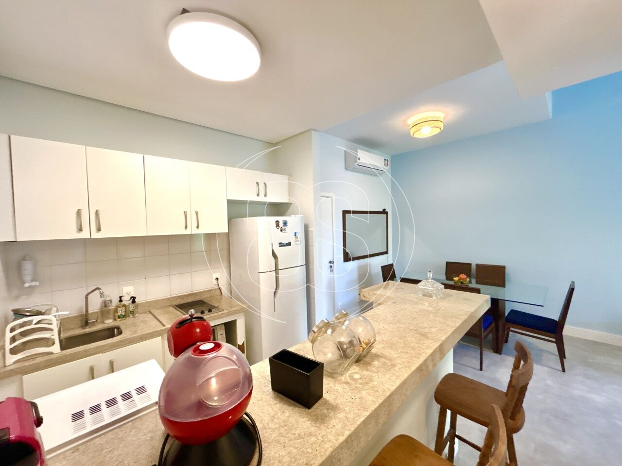 Sala ampla integrada à cozinha americana, proporcionando um ambiente moderno e funcional