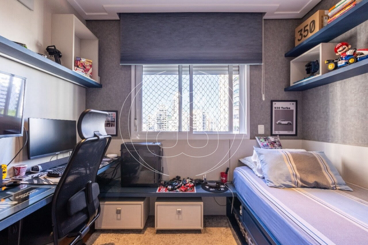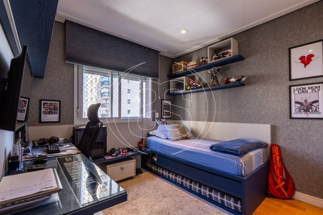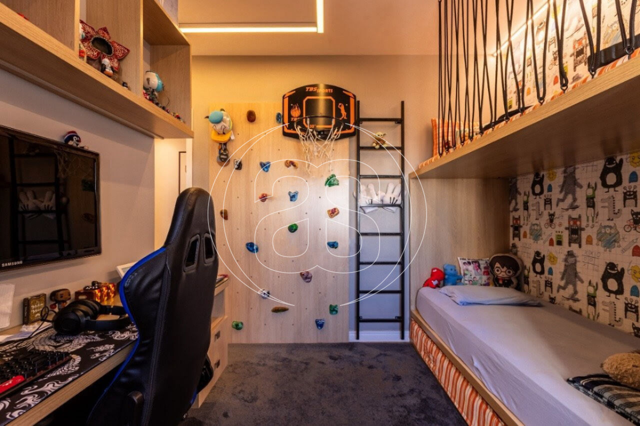 Conta ainda com sala de TV privativa, área de serviço completa com dependência e banheiro, além de 4 vagas de garagem e depósito.