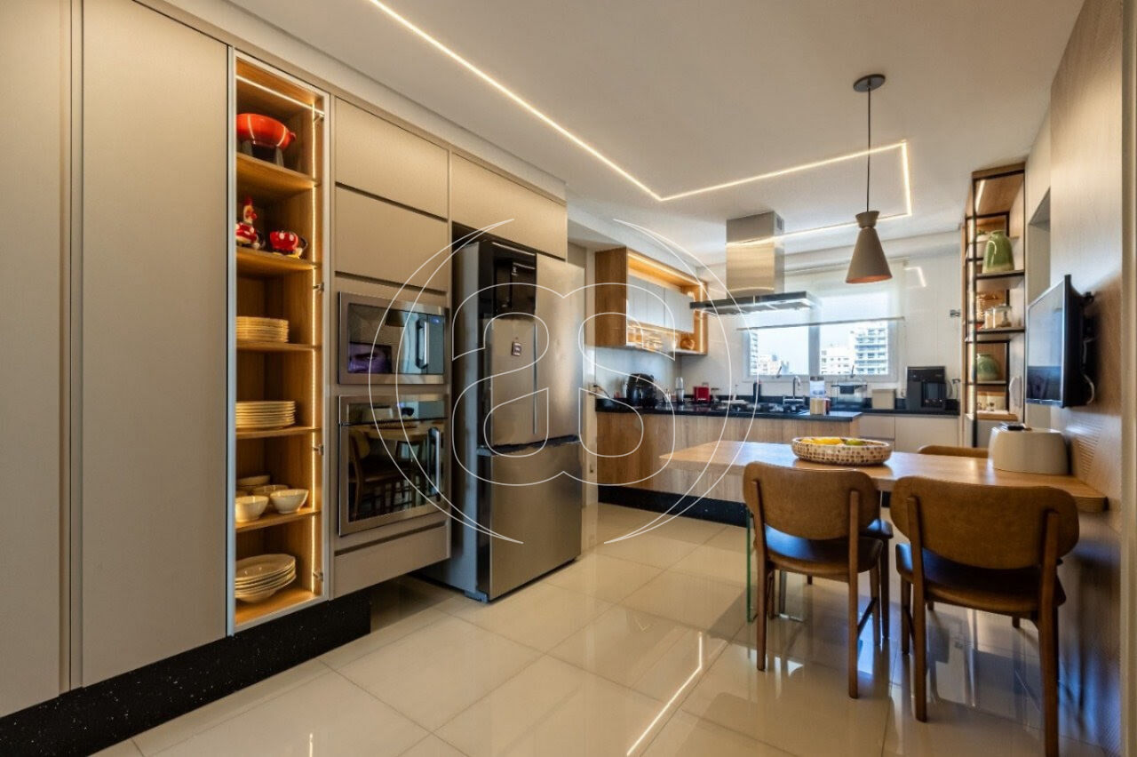 Os ambientes de estar, jantar e cozinha são integrados de forma inteligente, proporcionando uma atmosfera acolhedora e ideal tanto para receber quanto para o dia a dia.