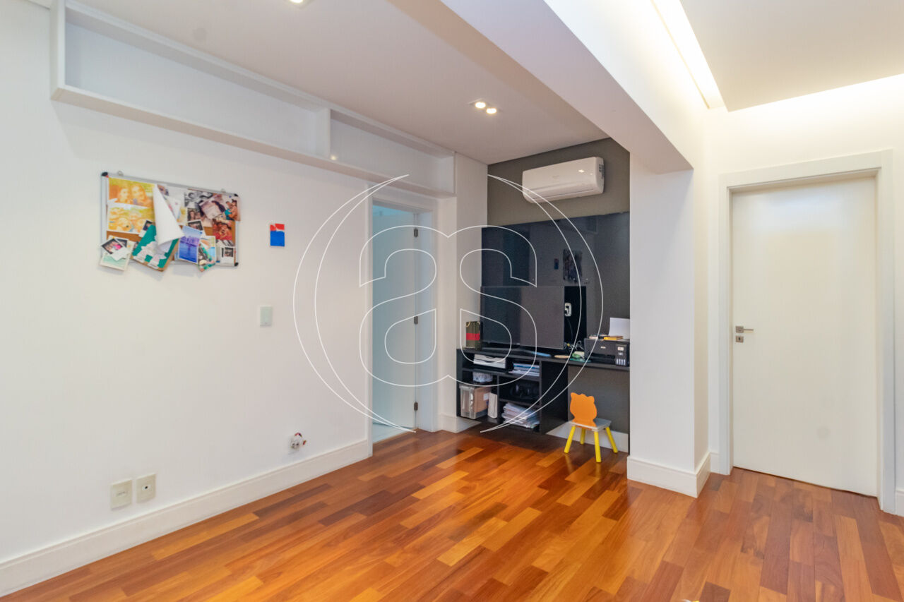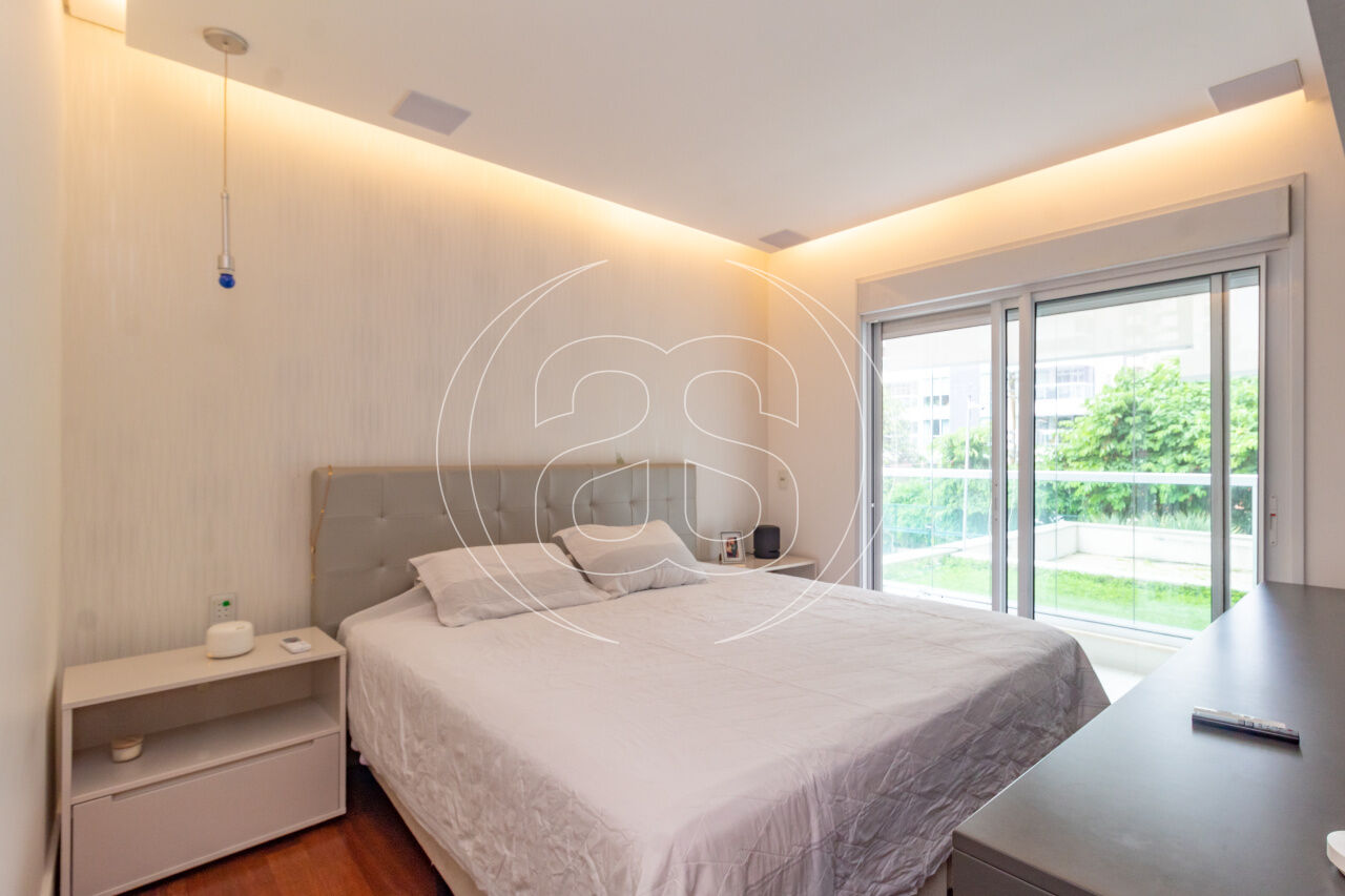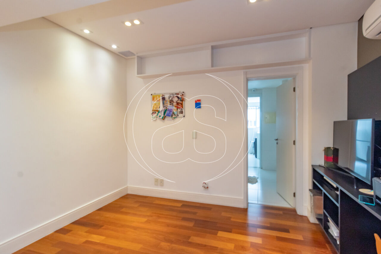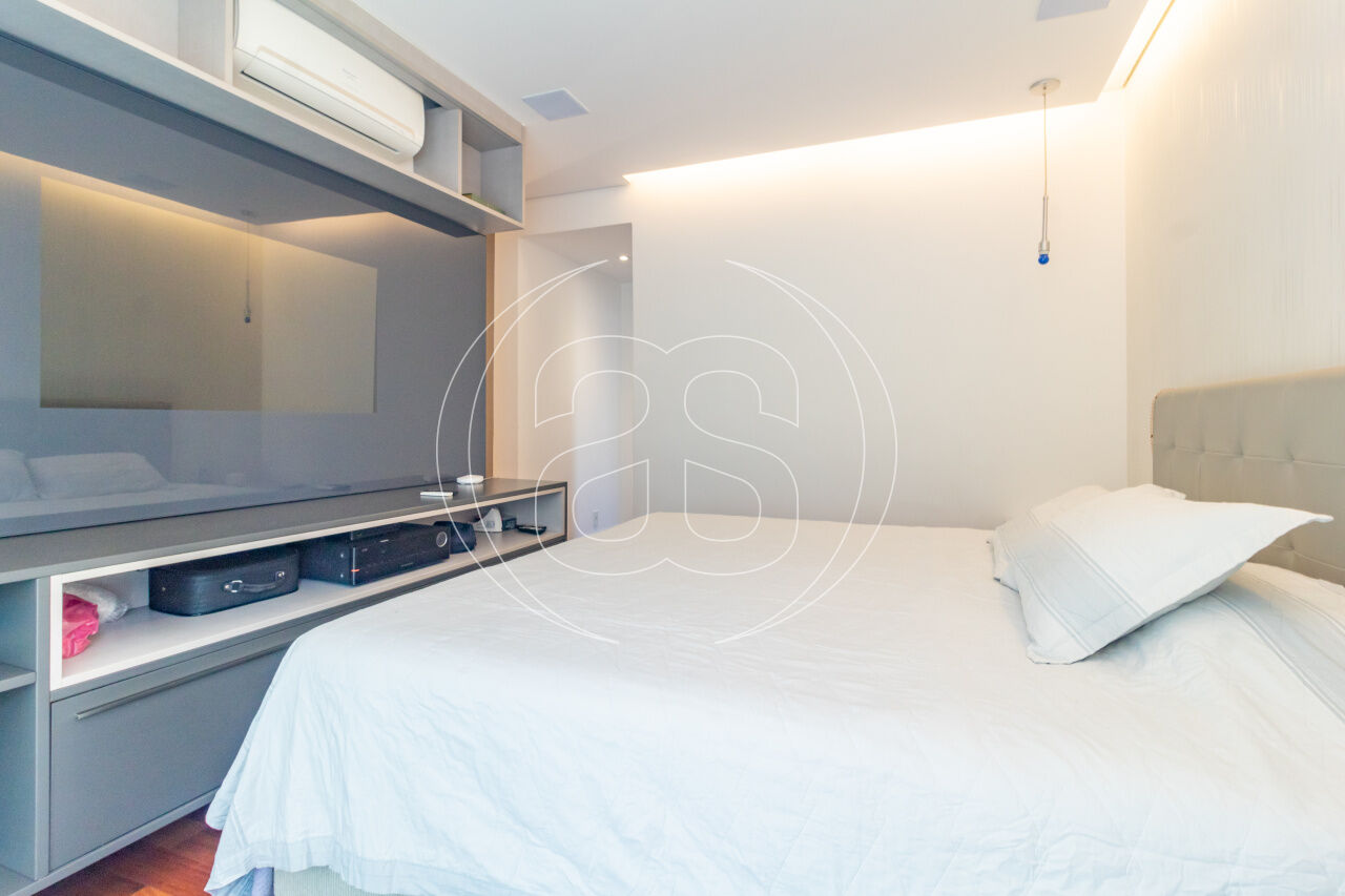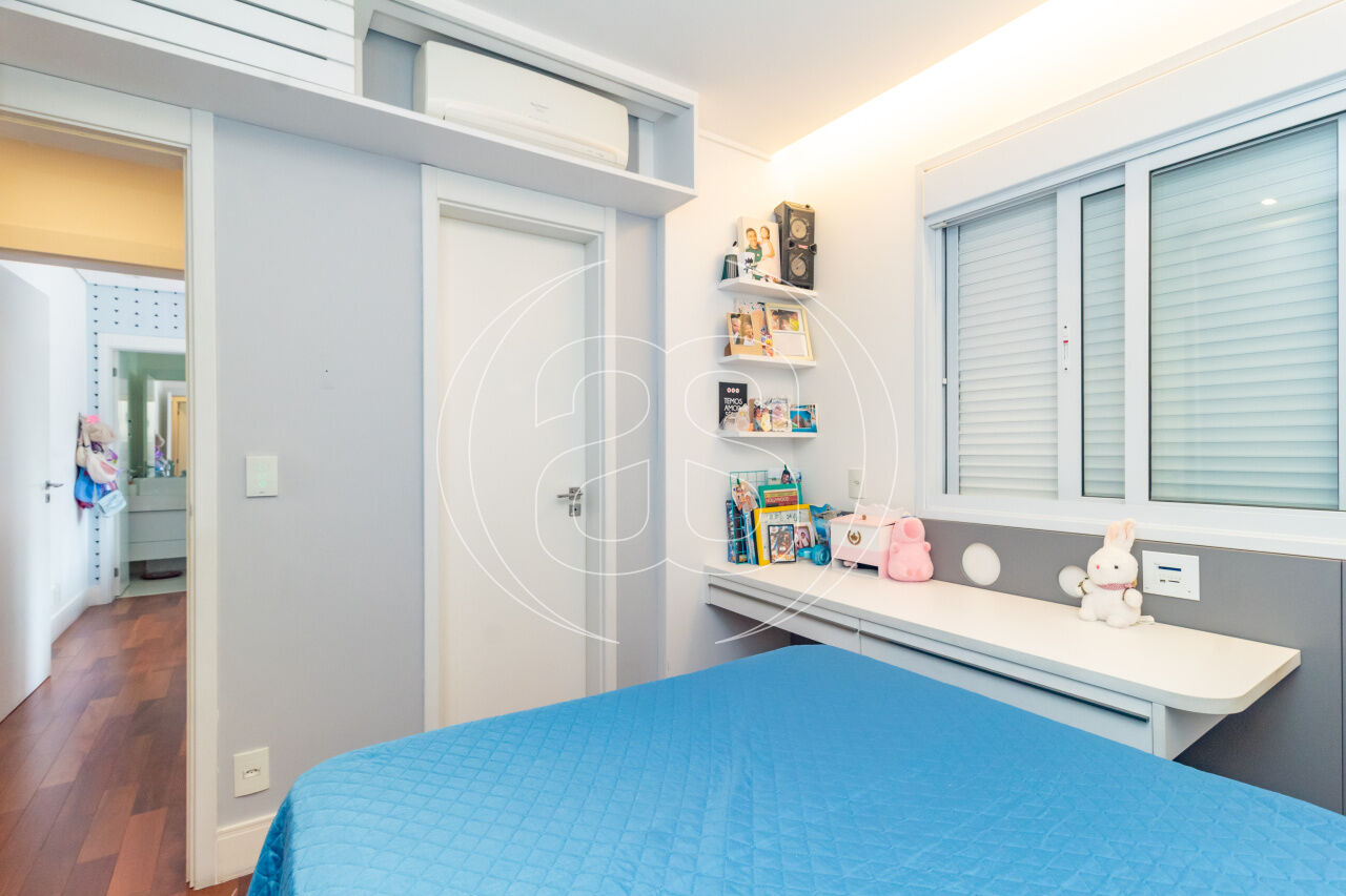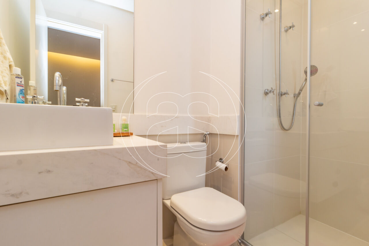 A cozinha planejada é prática e elegante, acompanhada por copa, área de serviço independente e dependência completa. O apartamento conta ainda com ar-condicionado, infraestrutura de automação, depósito privativo e 3 ou mais vagas de garagem.