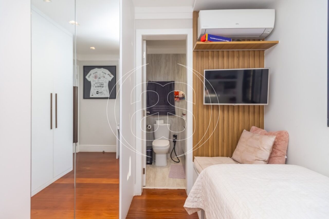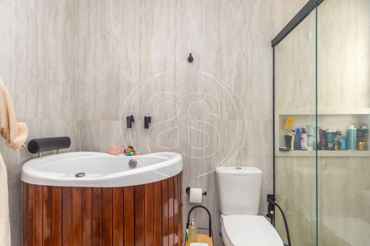 São 173m² distribuídos em living para 2 ambientes com pé direito duplo, terraço, 3 suítes sendo a master com closet e hidromassagem, cozinha repleta de armários, área de serviço, dormitório e banheiro de empregada. Conta com 3 vagas de garagem.