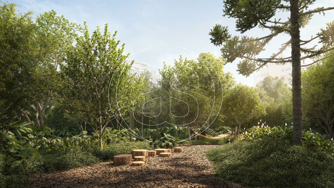 Nas áreas comuns o empreendimento conta com bosque privativo com mais de 400 m² de área verde, churrasqueira com piscina privativa, guarita com vidro blindado e acesso por biometria no social, serviço e veículos, além de vagas vinculadas