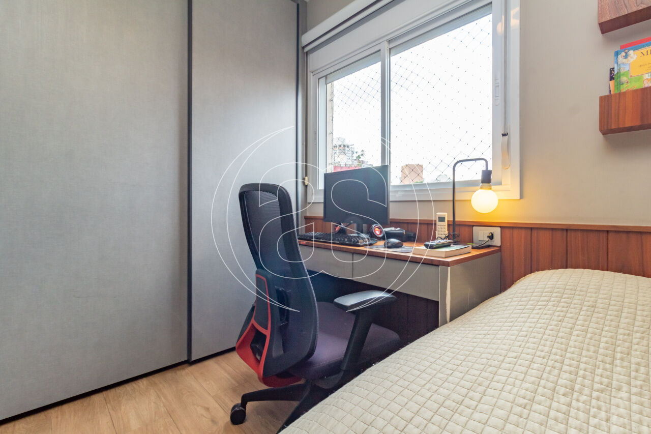 São três dormitórios, sendo uma suíte, além de três banheiros que garantem praticidade e comodidade para toda a família. O apartamento conta ainda com duas vagas de garagem, proporcionando mais conforto e segurança no dia a dia.