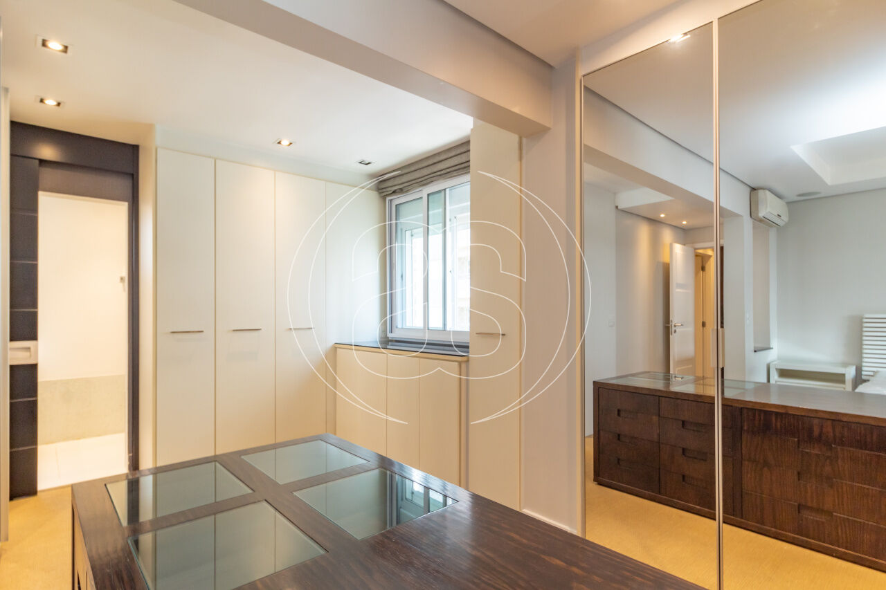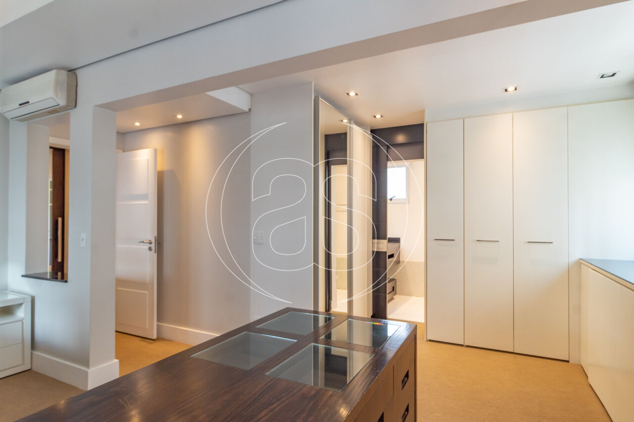 Closet amplo, com móvel ilha, cortina com blackout (Casa Mineira),cama King Size (Madeira Bonita)