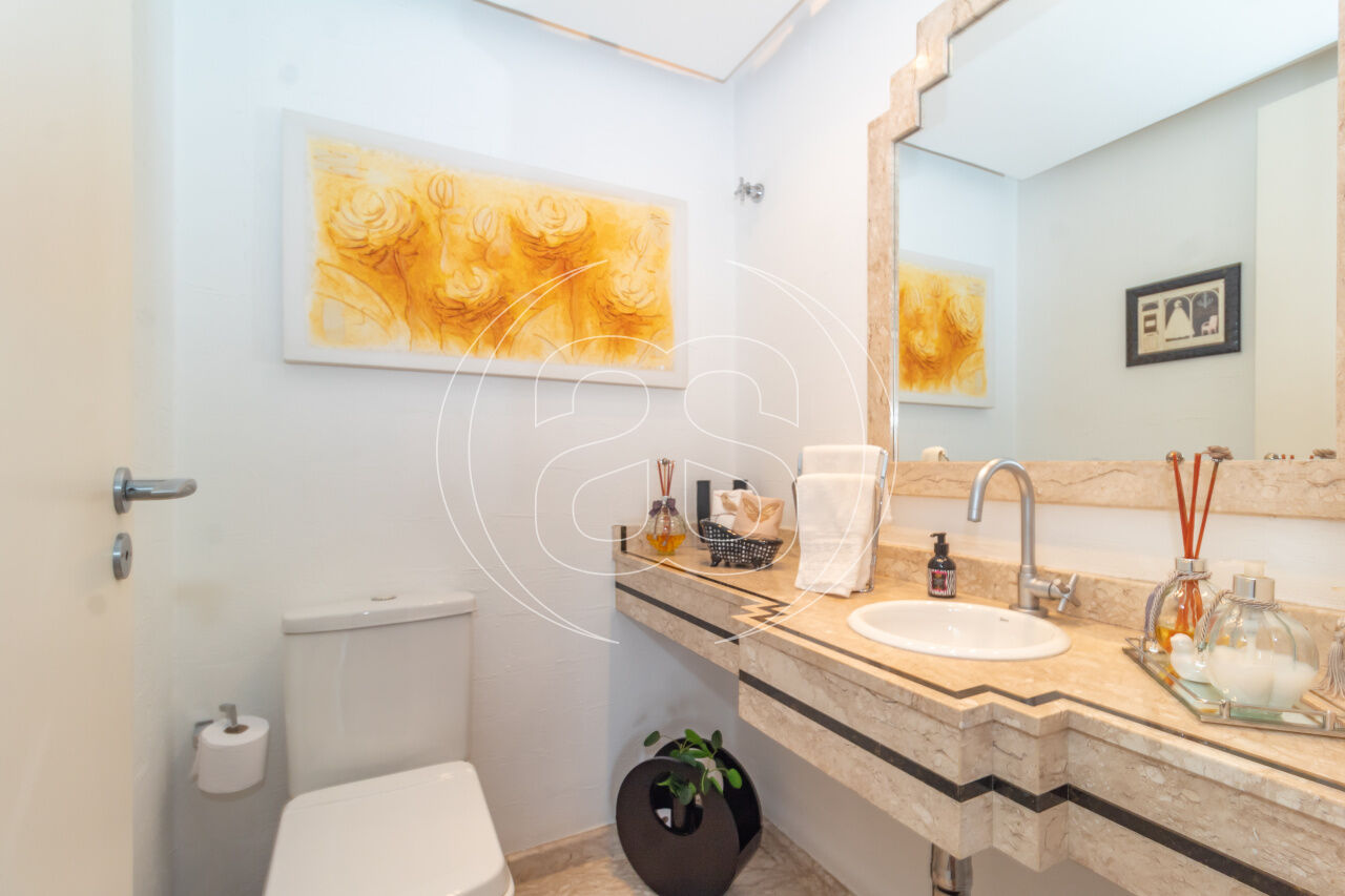 Além das 4 suítes, o imóvel conta com 6 banheiros, distribuídos de forma estratégica para garantir a comodidade e praticidade no dia a dia de todos os moradores. A infraestrutura do apartamento é pensada para quem valoriza a qualidade de vida e a elegância.