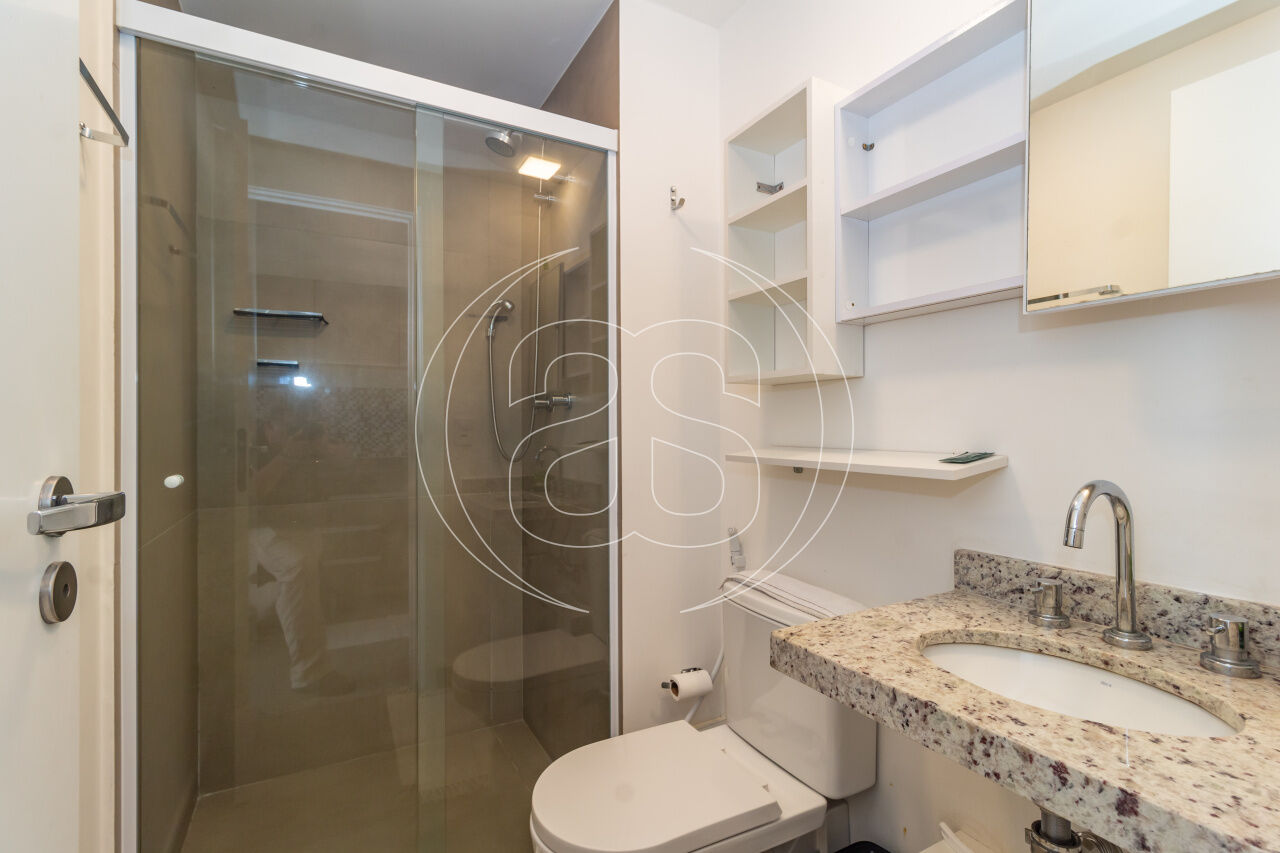O apartamento também conta com um banheiro moderno e funcional, equipado com acabamentos de qualidade e pensado para proporcionar conforto e praticidade no dia a dia.