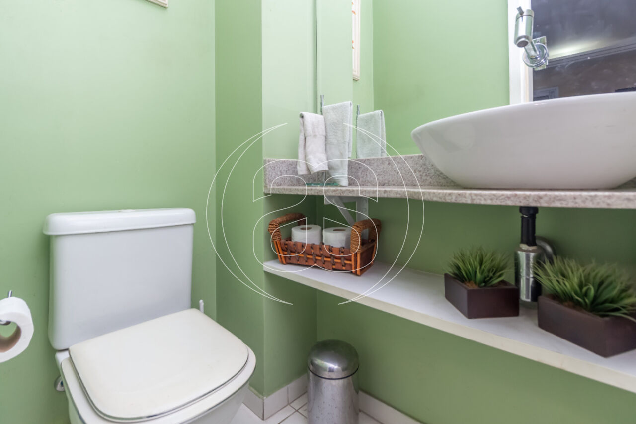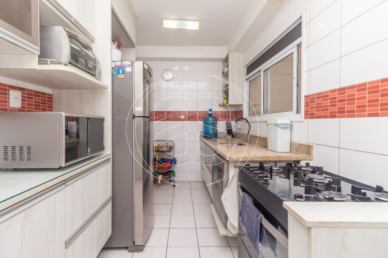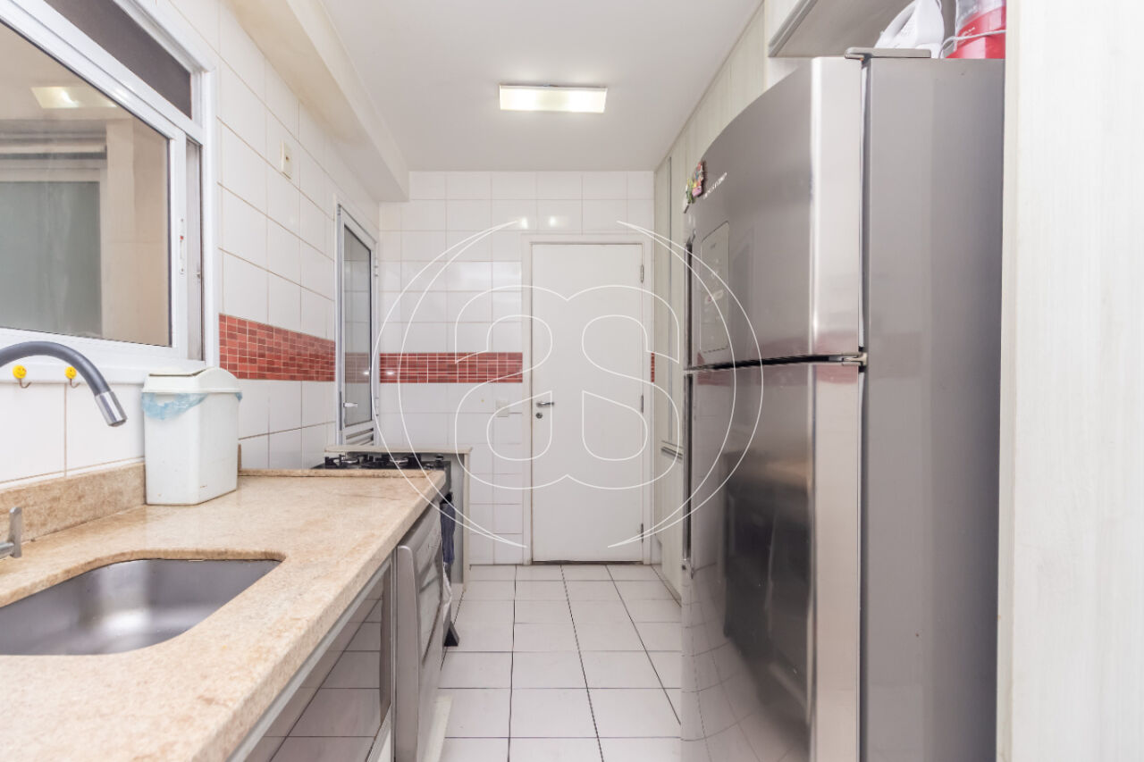 A moderna cozinha possui área de serviço e banheiro para funcionários (que hoje funciona como depósito). Além de 2 vagas de garagem com sorteio a cada 2 anos.