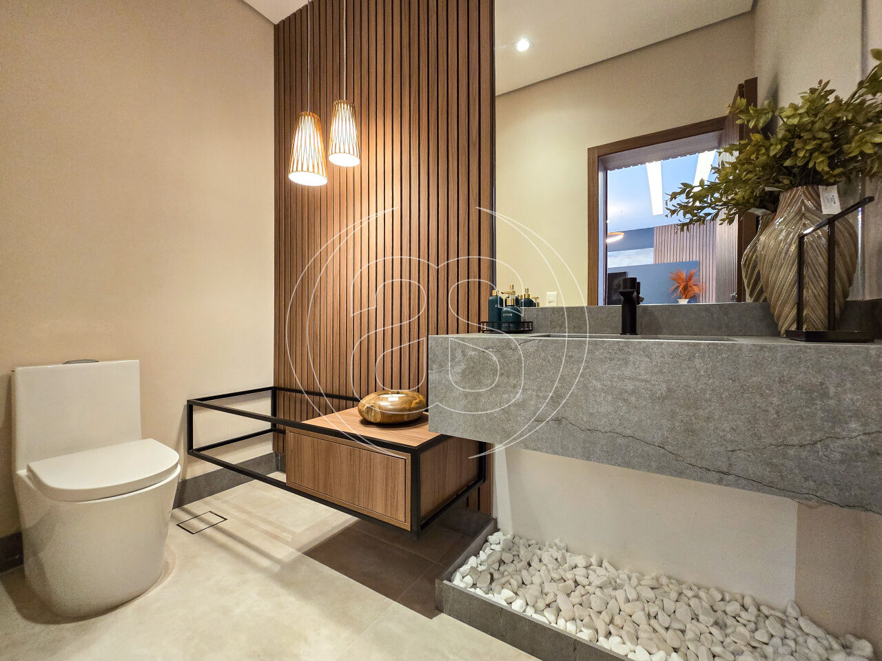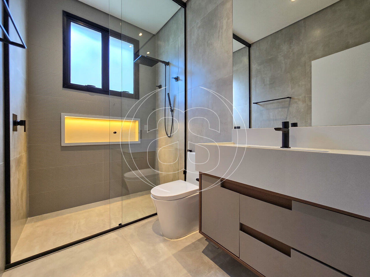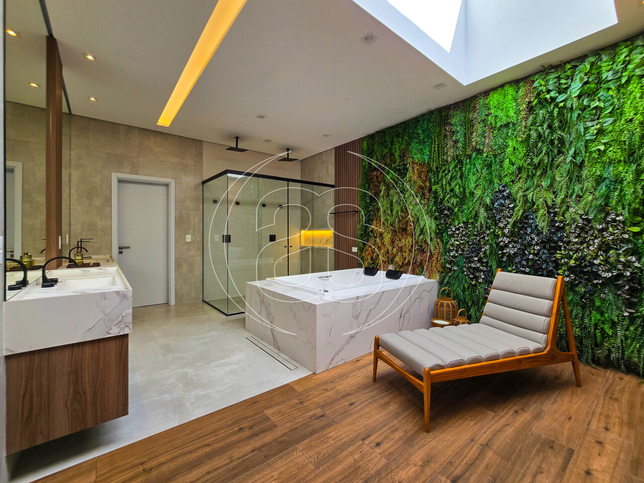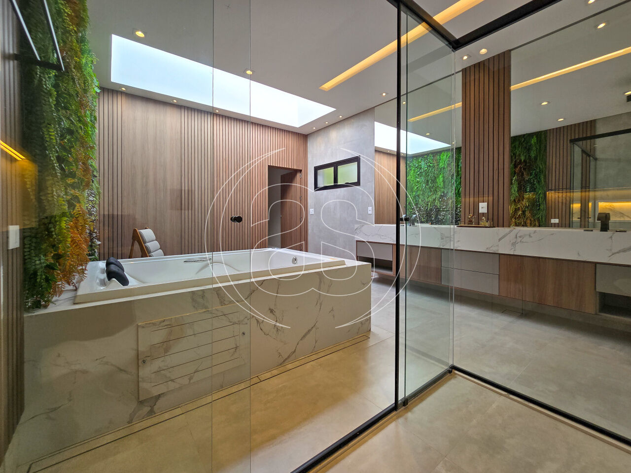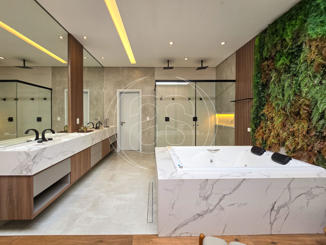 São seis dormitórios, todos suítes, garantindo total privacidade e comodidade, além de sete banheiros que atendem perfeitamente às necessidades da residência. A casa conta ainda com oito vagas de garagem, oferecendo praticidade e segurança.