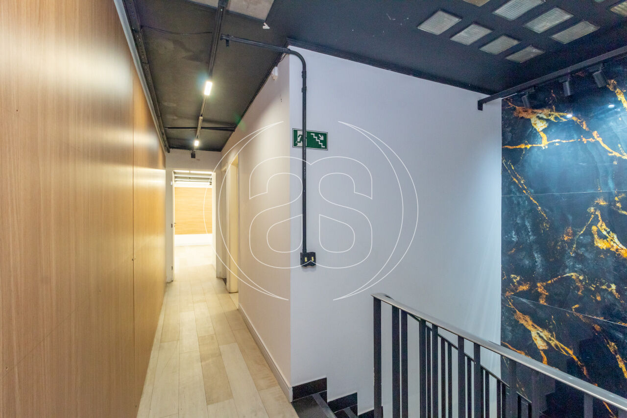 No pavimento térreo, o imóvel conta com recepção, quatro salas bem distribuídas, dois banheiros e copa, oferecendo uma estrutura prática para atendimento e operação da equipe. No andar superior, são três salas adicionais, sendo uma delas com banheiro privativo, além de mais um banheiro de apoio.