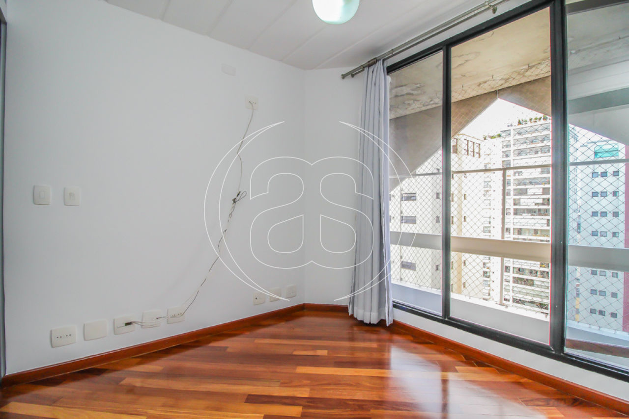 Semi mobiliado, repleto de armários, piso em madeira e decoração aconchegante. O condomínio possui manobrista 24hs, piscina no rooftop, churrasqueira, academia, salão de festas e lavanderia com funcionárias. Está localizado na Avenida Jamaris, no bairro de Moema.
